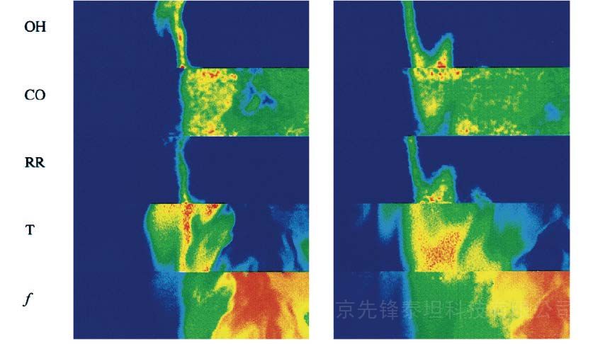 本公司代理ICCD 拍摄的PLIF 图像OH LIF, CO LIF, reaction rate (RR), temperature (T),and mixturefraction (f)