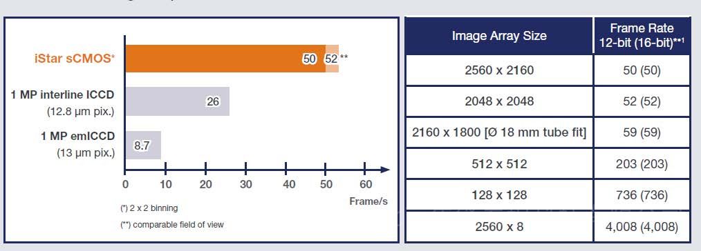 ANDOR 的*新的iStar sCMOS 系列像高灵敏度瞬态探测器可提供要求高分辨率,高帧频以及纳秒时间分辨测试的解决方案。2560×2160 分辨率的探测器广泛应用于时间分辨实验的应用领域,例如等离子体分析。