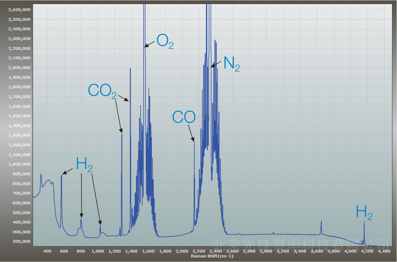 图 N2,O2,CO2,CO,H2气体拉曼光谱图