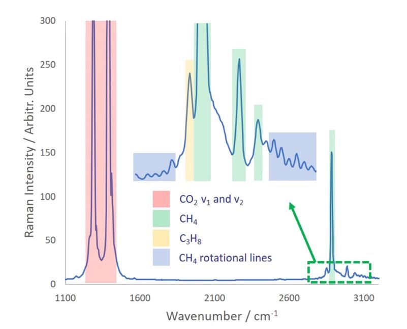 图 N2,O2,CH4,NH4,CO,H2O气体拉曼光谱图